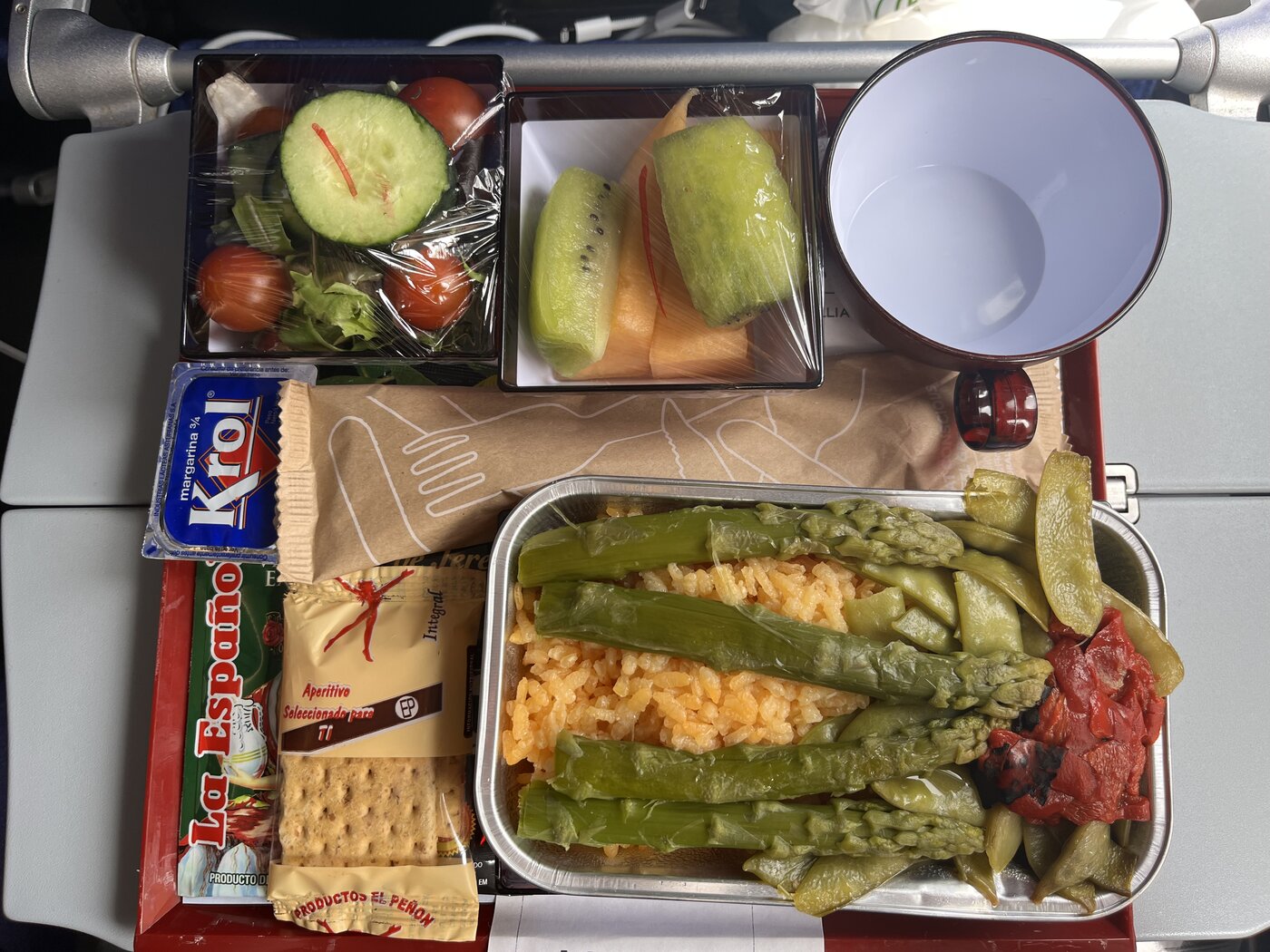 a huge benefit was that they would bring me the food first and even when I was asleep, they waited for me to wake up and then they brought me the plate, I felt like I got first class treatment in economy, score!