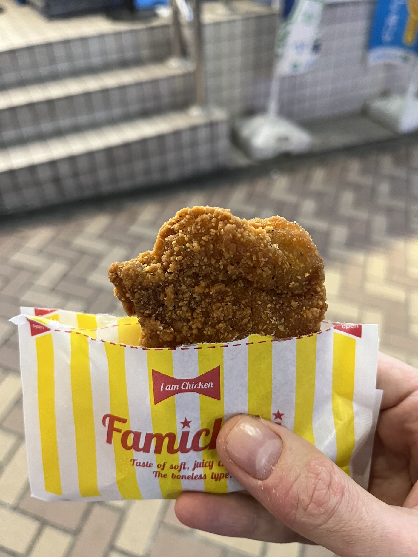 on the way home I had to compare the two main contenders for convenience store chicken, Famichiki from Family Mart and Nanachiki from 7-Eleven. I don’t know how they do it but I haven’t had chicken so juicy, so tender, yet so crispy at the same time, and I don’t think I will ever know or taste anything like it elsewhere. the sodium overdose was worth it, my knees got weak from the explosion of flavor, I’ll have to restrain myself from buying one of these every day!