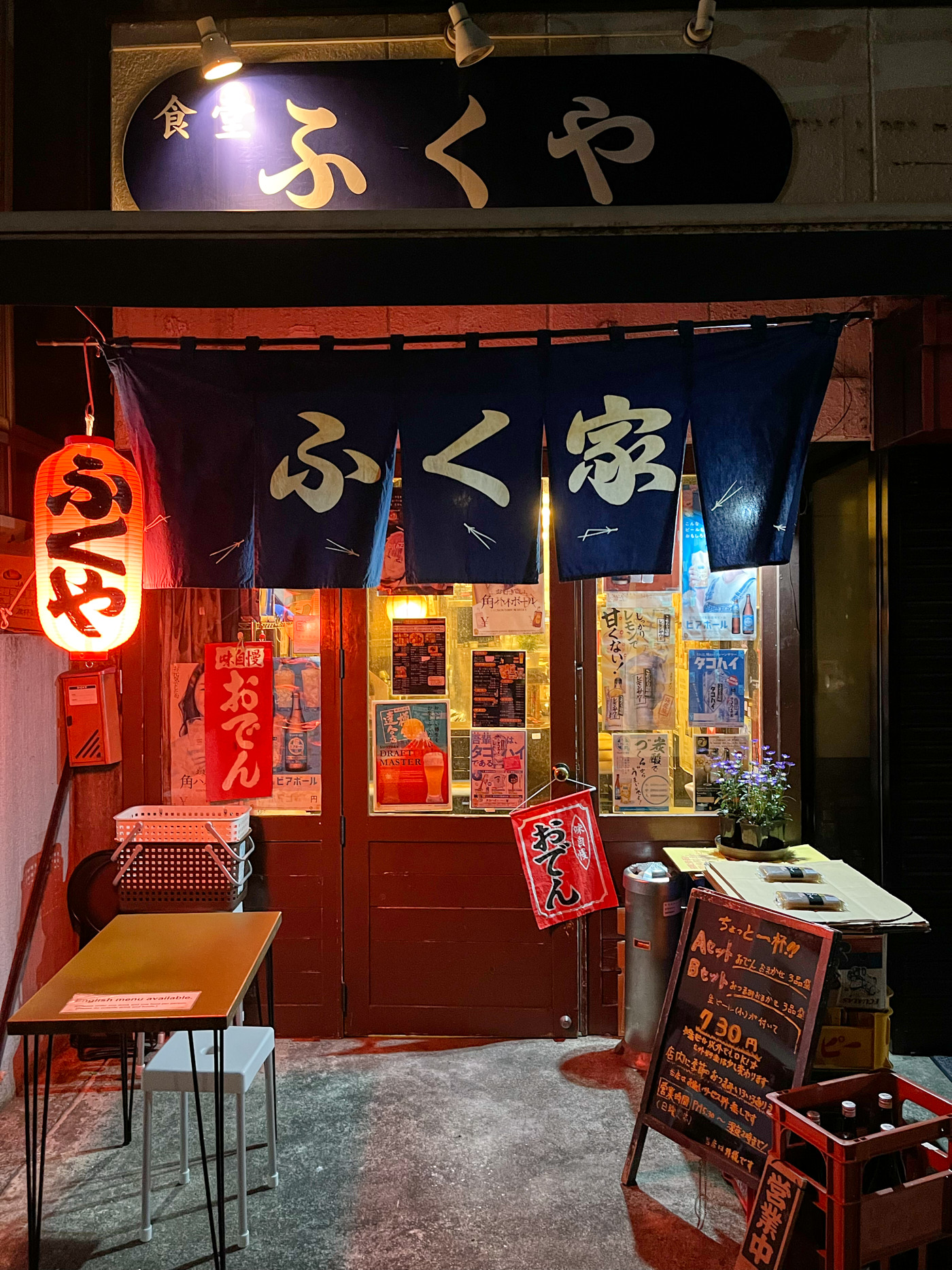 I ran home to finish up work with two late night meetings and by the time I started looking for places to eat, all the regular restaurants were closed (I’m sensing a pattern here, jetlag + Spanish eating times combined make for tough times). I was wandering aimlessly, accompanied by my growling stomach, contemplating going home defeated when I noticed a shop that seemed to be open at one in the morning but there was something off. when I looked in from the street, what I saw was a handful of seats and at the bar, at the last stool was an old man sleeping hunched over next to an ashtray. after some consideration I went in to wake him up. he was a bit startled by me and suddenly jumped up, and I felt like he’s going to kick me out of his izakaya but when I greeted him with my basic Japanese he seemed to soften up a little. then when I told him that I would like some food and a drink, his demeanor changed and put his unlit cigarette back in the box and went behind the bar to hand me the menu.